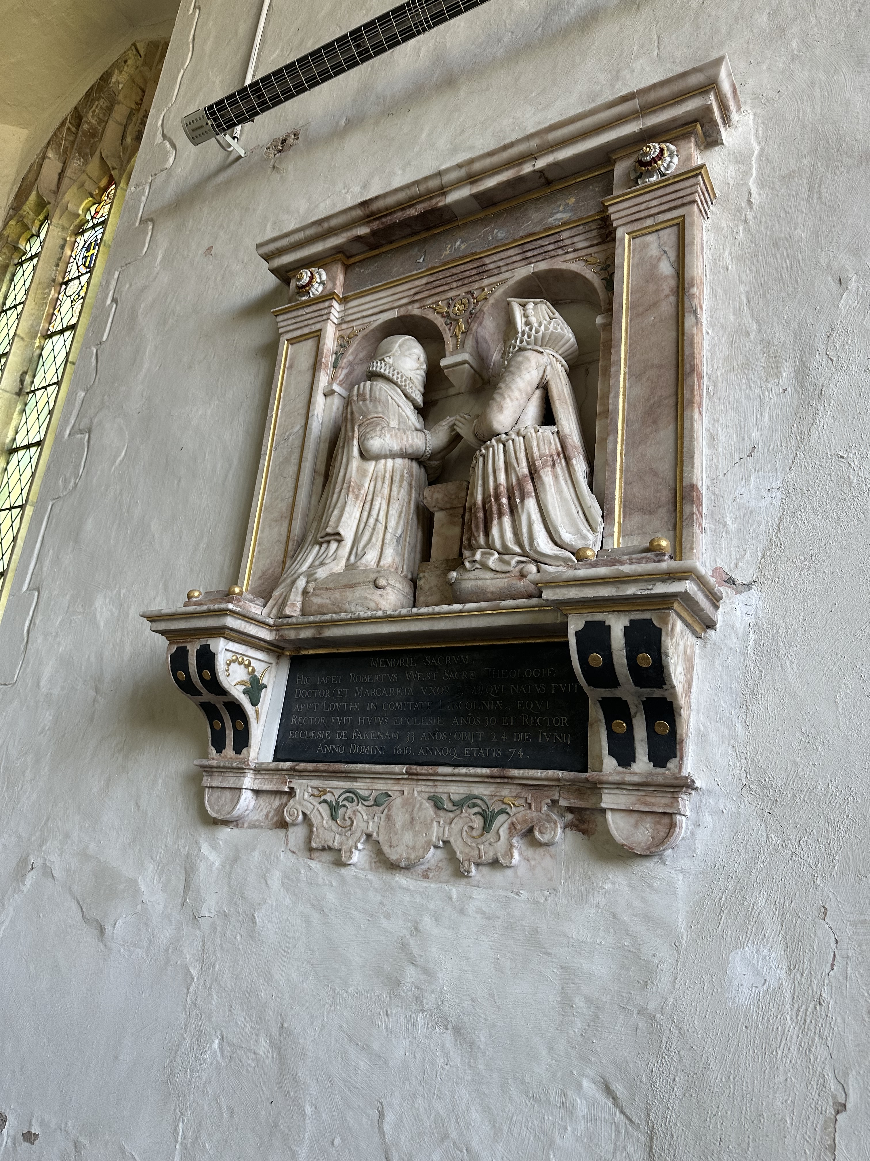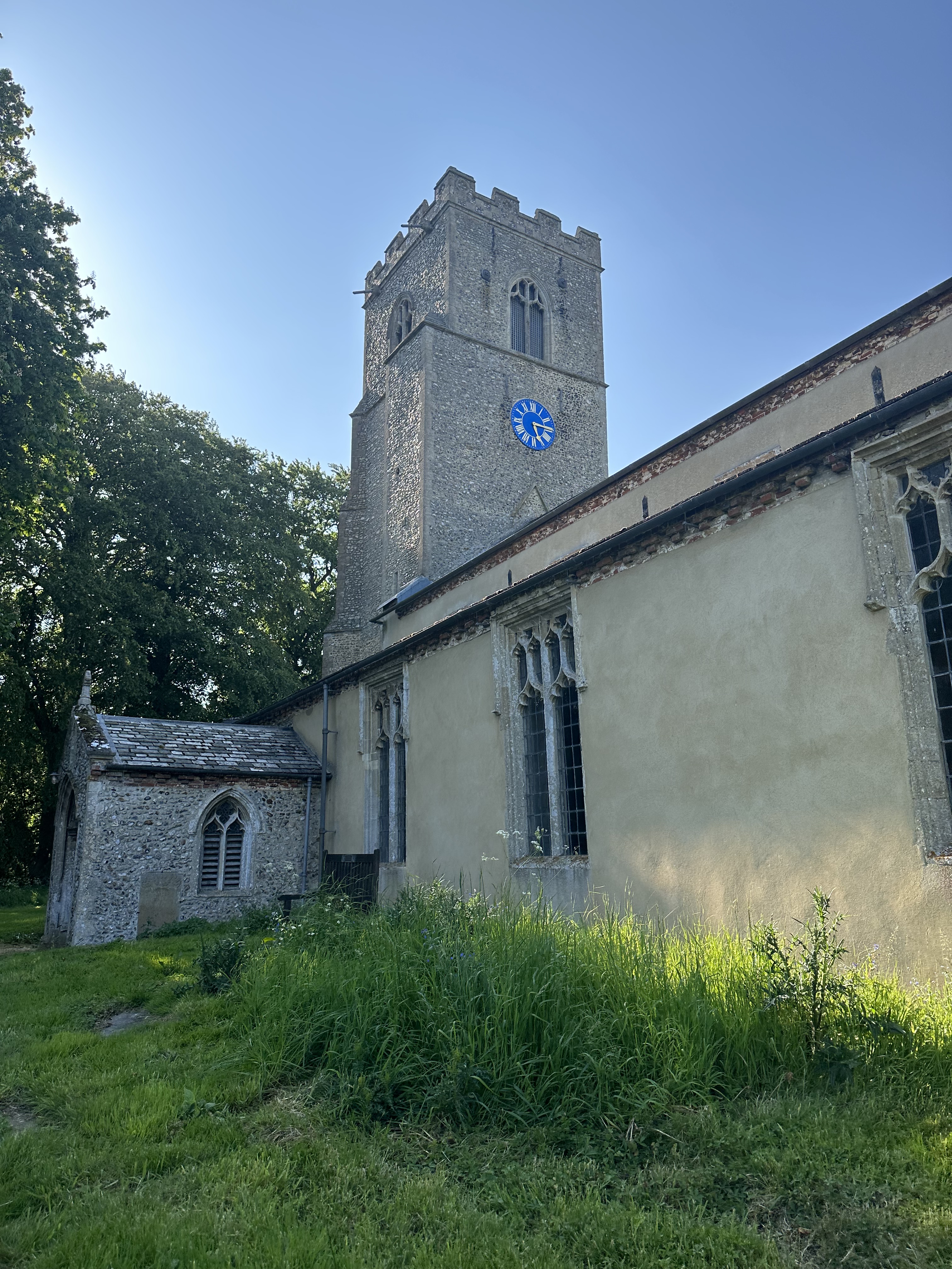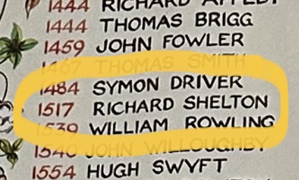 - Great Snoring – First stop on the Shelton tour. Here, we visited St. Mary the Virgin Church. Evidence of Shelton influence included a medieval brass of my grandmother and artifacts from Sir Ralph, my grandfather. The adjacent rectory was built by Sir Ralph and his family lived here until moving further south a few years later. Famously quoted by saying, “I can sleep without Snoring.” Remember – the puns are abundant with our family.