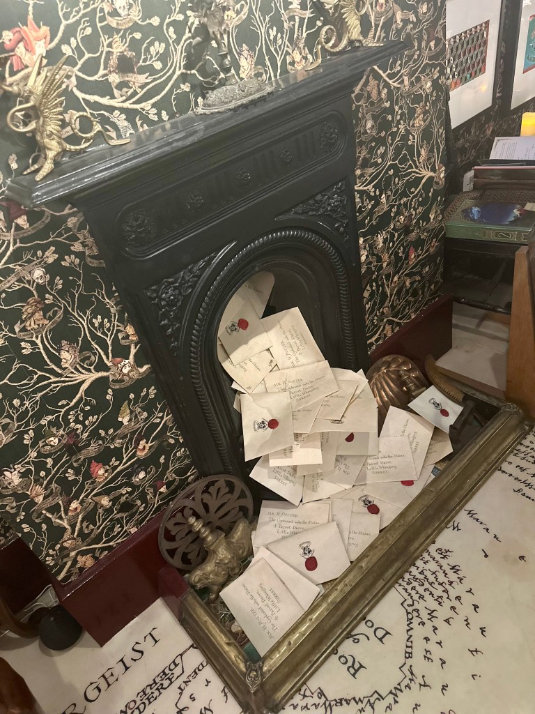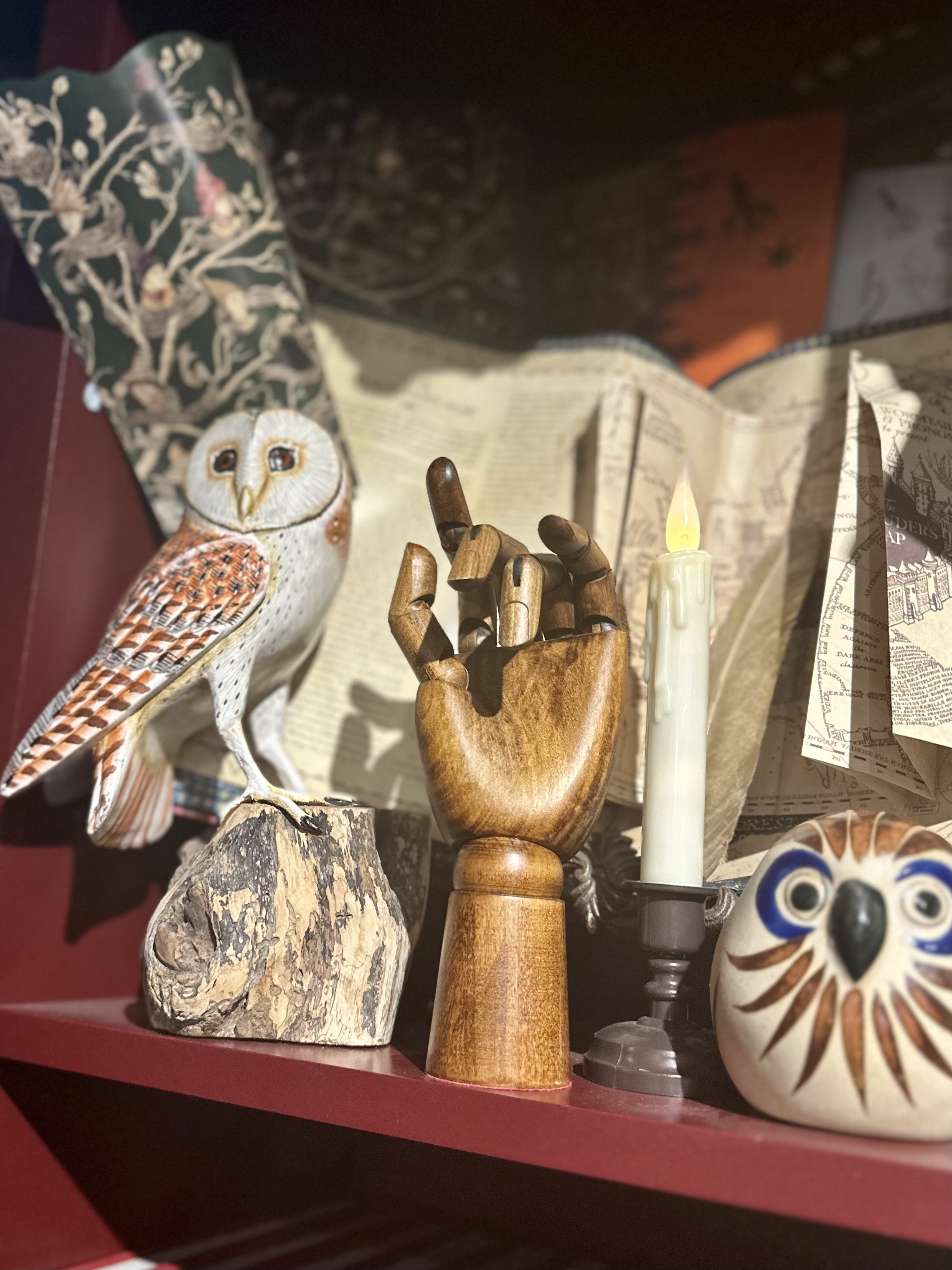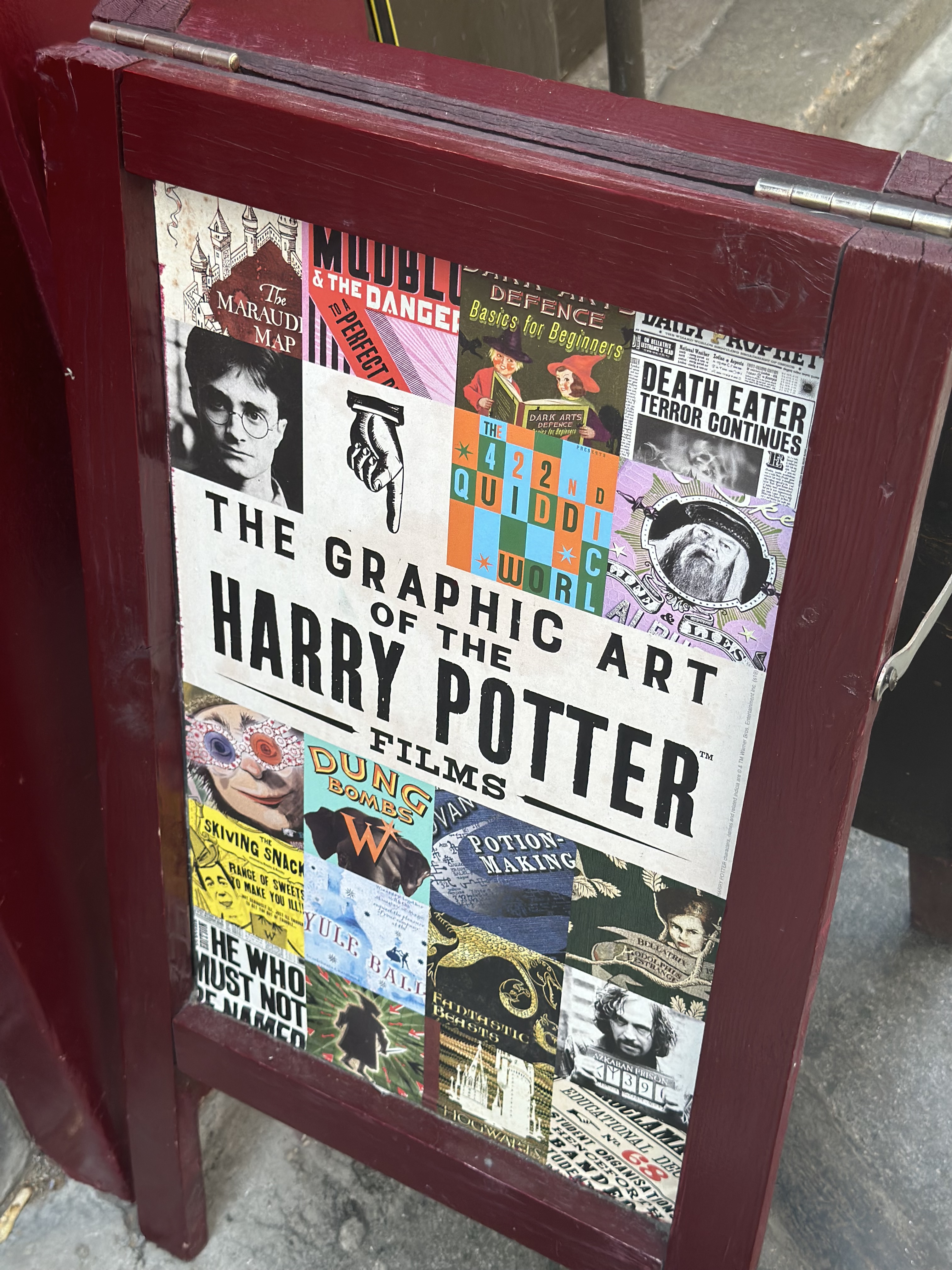 - House of Minalima – This has been on my list of “must sees” and I’m so glad I went! The shop is very small, but packed with everything Harry Potter as this was the design team behind illustrations and artwork of the books and films. The Black Family wallpaper was prominent as were several copies of the Quibbler, Daily Prophet and all of the Hogwarts required reading. If only I had more room in my luggage, the amount of things I would’ve bought! (I love that wallpaper!) What a treat to see so many props from the different films (including the Fantastic Beast franchise)!