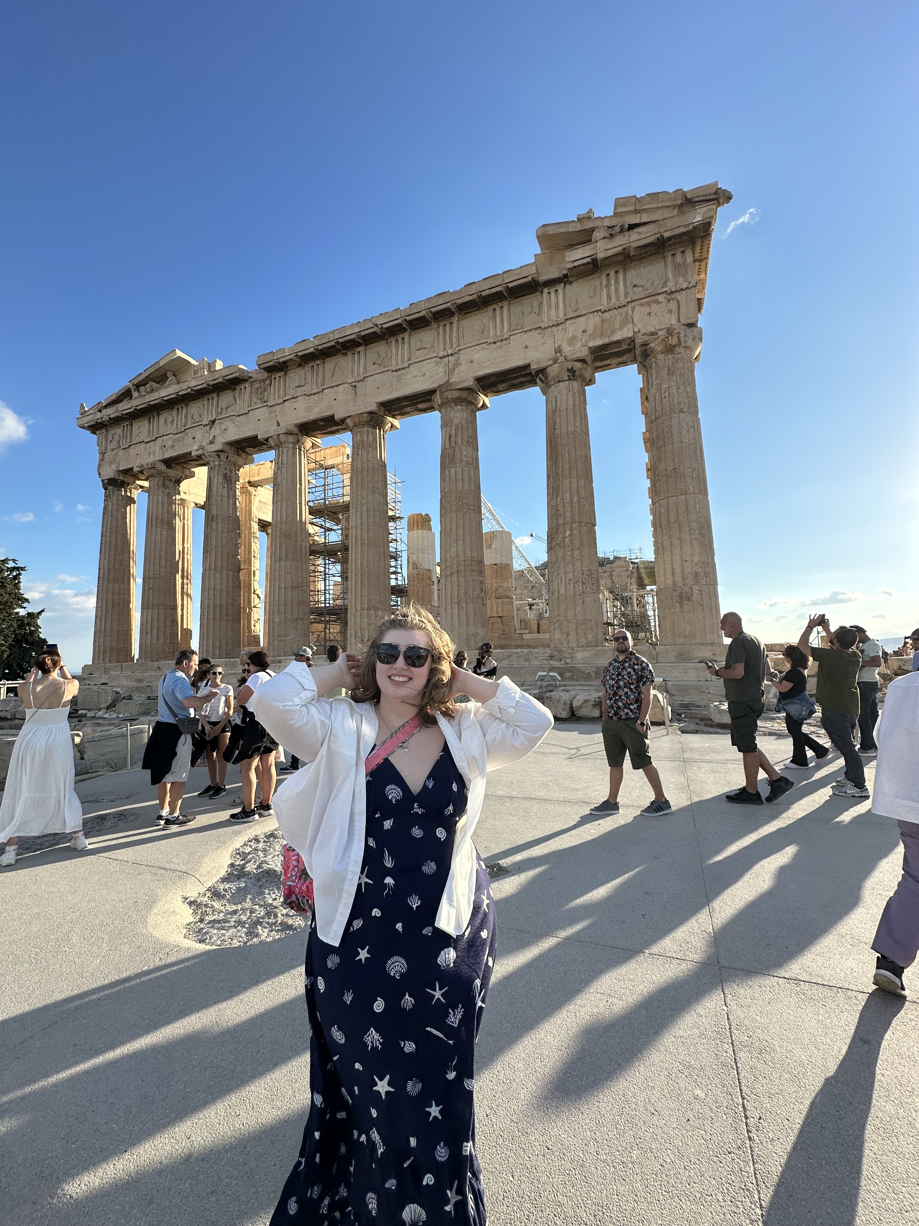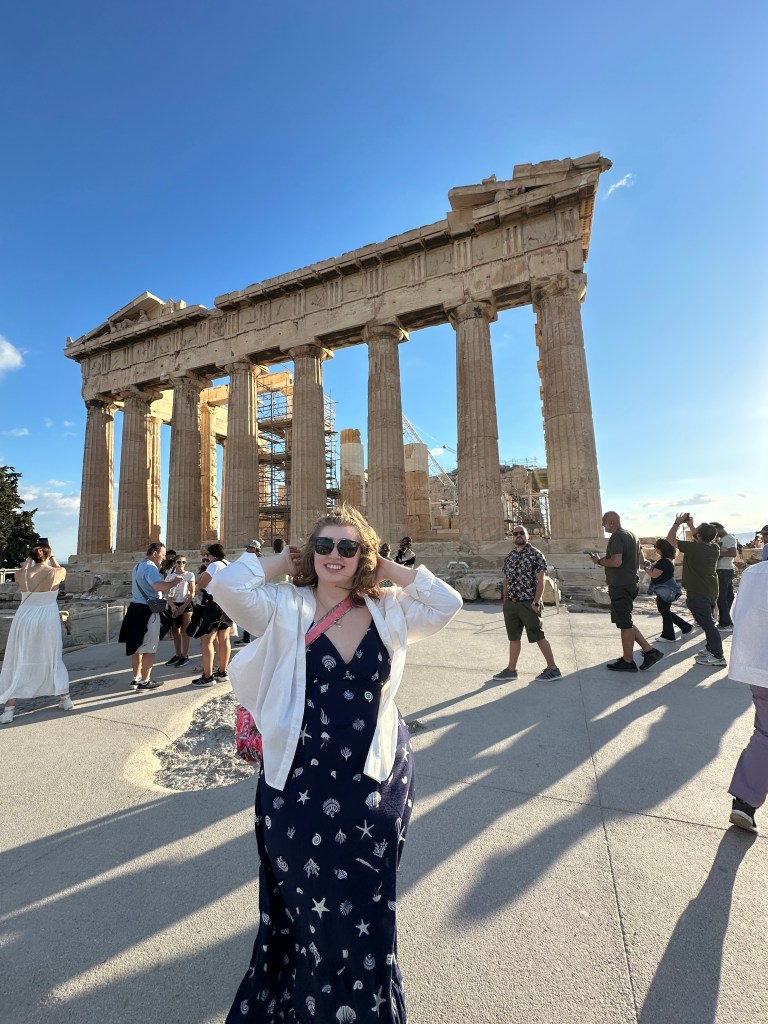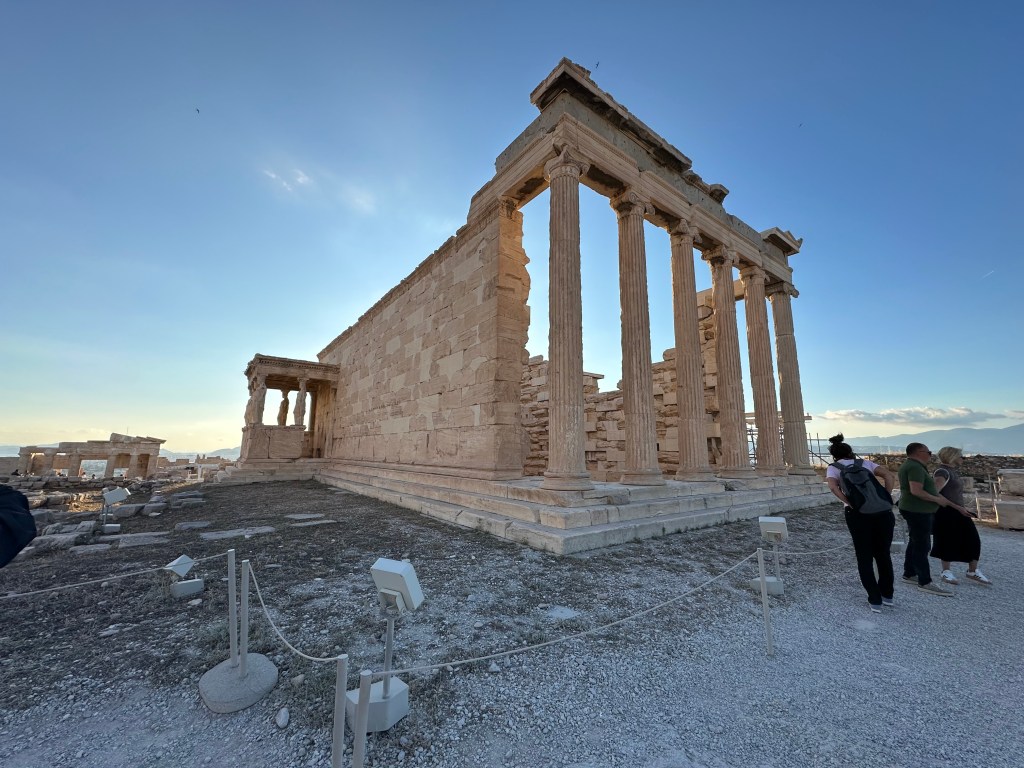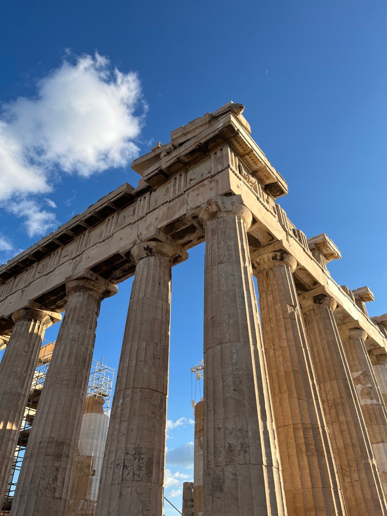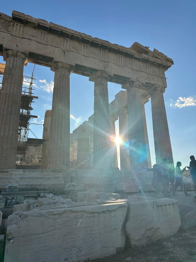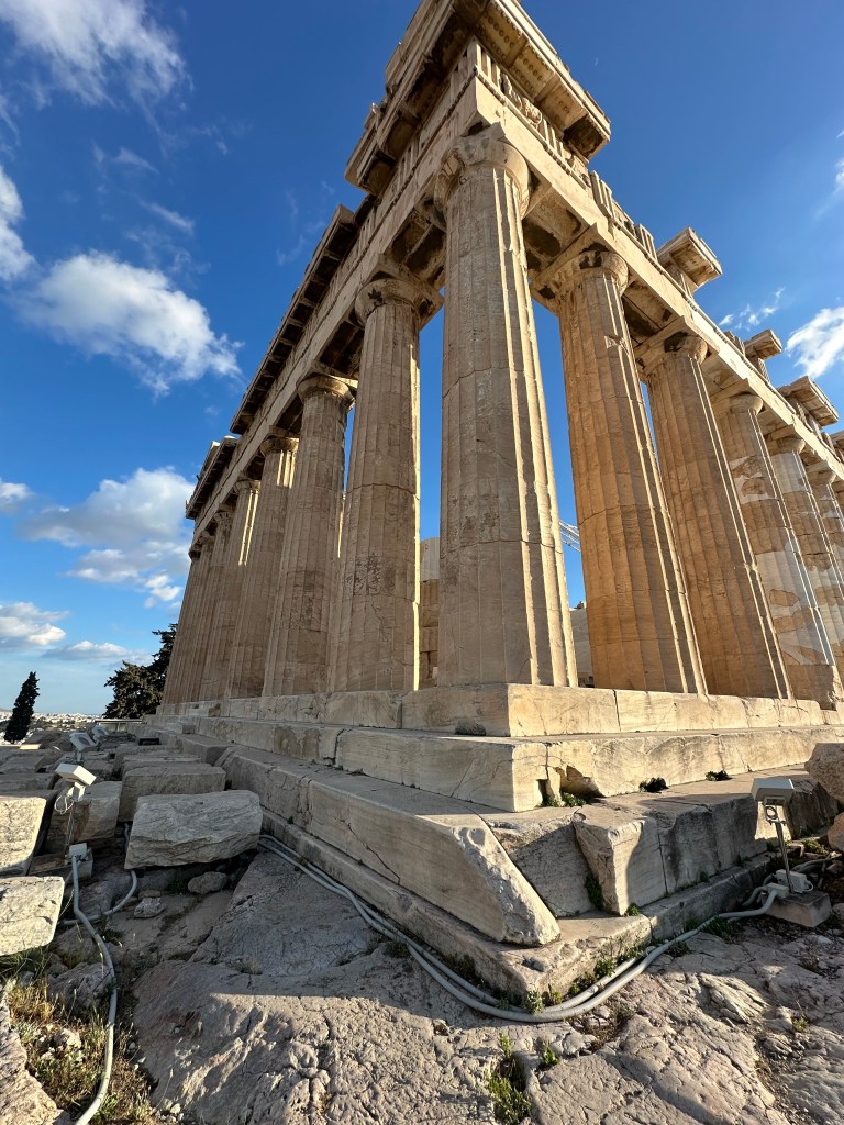 When I finally hit the hay at 2AM Athens time, my Apple Watch had clocked over 18K steps. Most of that was uphill. Today, we hiked to the top of the Acropolis. If you’ve been to Athens before, you know that the Acropolis is no joke. And unless you have medical validation, there’s only one way travelers can get to the top. Parts of that climb were tricky (not going to lie). How some of these folks were doing it in flip flops or slides is beyond me. But I am a woman of a *certain age* and now appreciate things like the tread on shoes.
