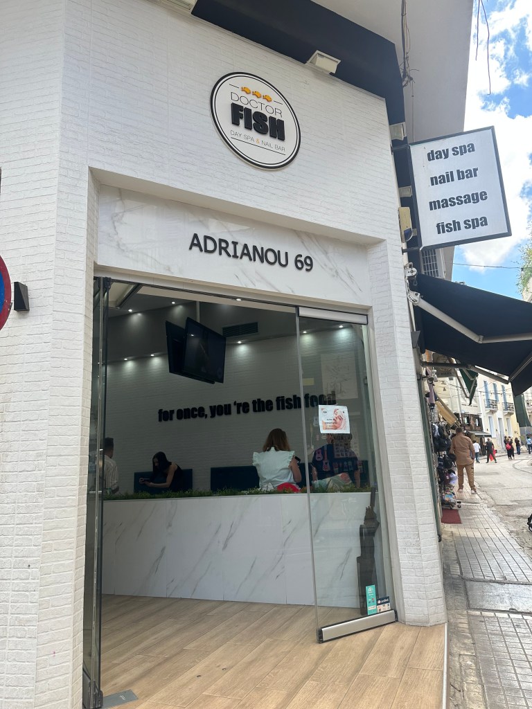 - Trip to Doctor Fish. This was recommended to me by a fellow travel agent and it did not disappoint. I’d booked 30 minutes massages for both of us and our total price was at least 1/2 of the price it would have been back home. If you’re headed to Athens, I highly recommend this place after your travel day just to rejuvenate and treat those tense muscles before tackling the rest of your trip!