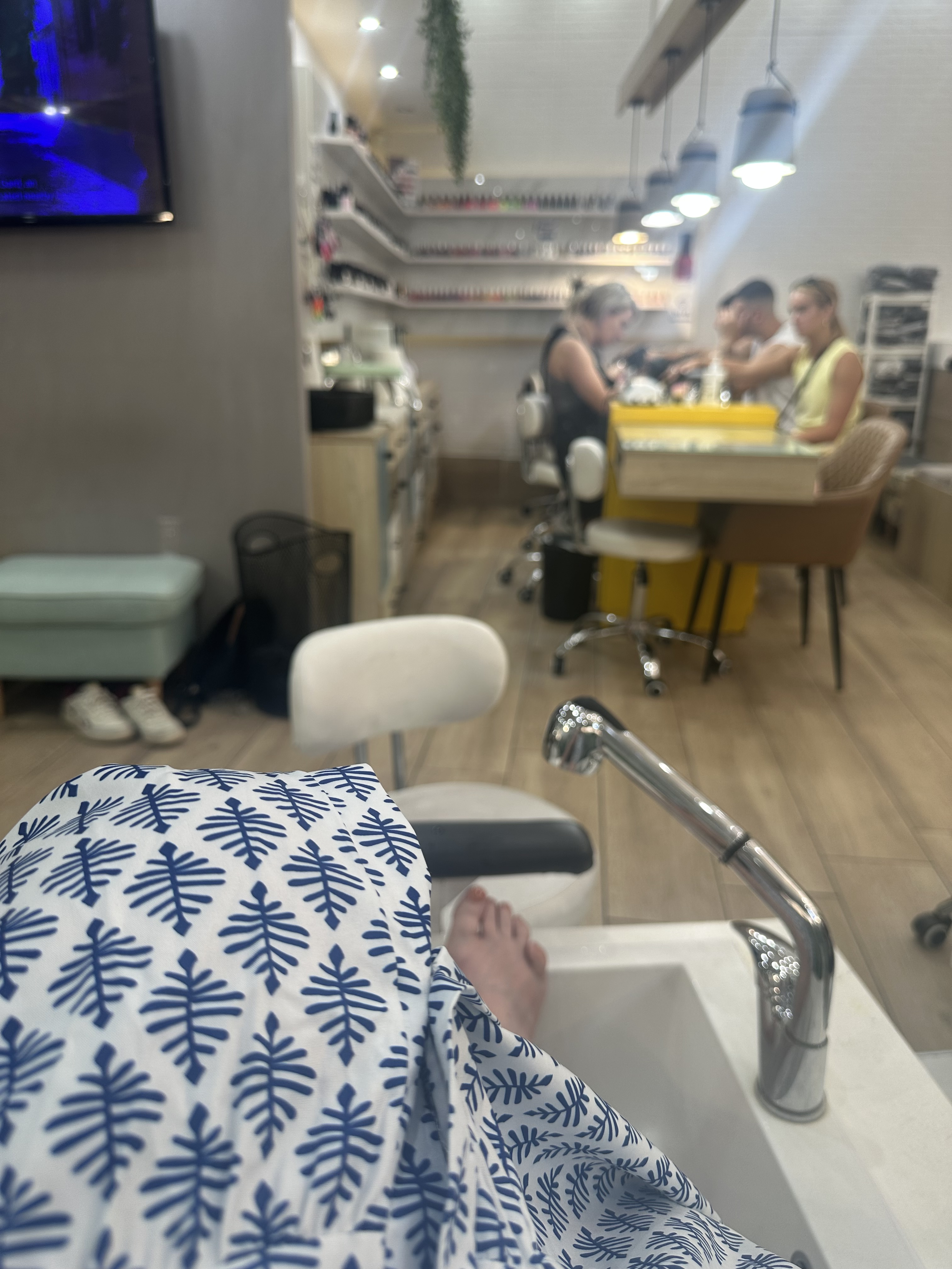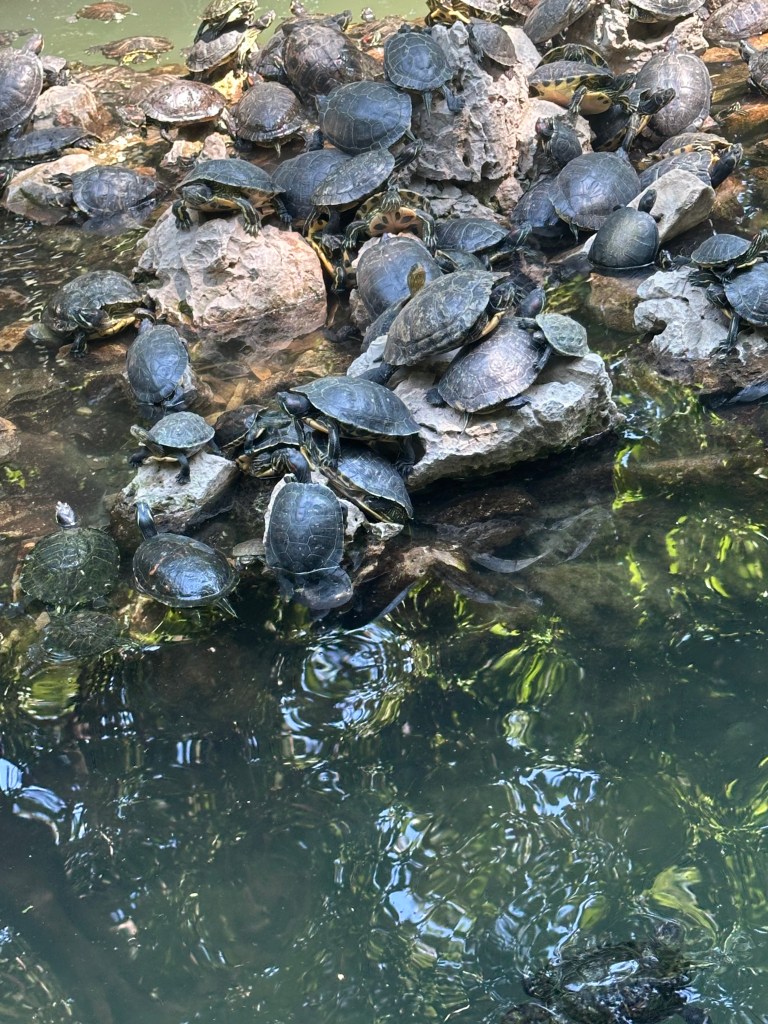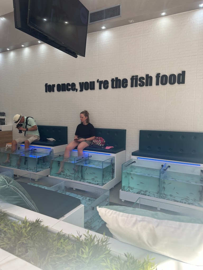 ACT II – Doctor Fish saved the day once again. By early afternoon, my old lady feet were feeling the miles I’d walked (and hiked). This day spa/nail salon was around the corner from our apartment, so I took advantage of their foot massage deal. I may have fallen asleep. Did I opt for the “fish spa” – no. But did snap of pic of the fish in action. Afterwards, I visited with a local artist named Makrina who Amelia and I have passed nearly everyday. Follow her on Facebook. Her work is delicate and precise.