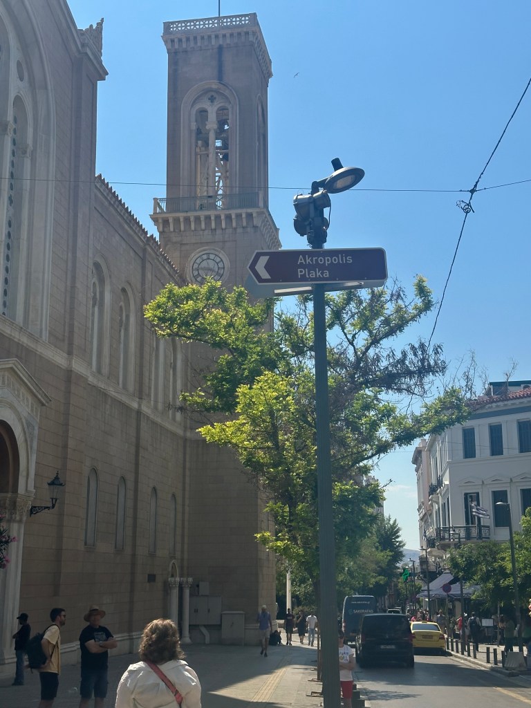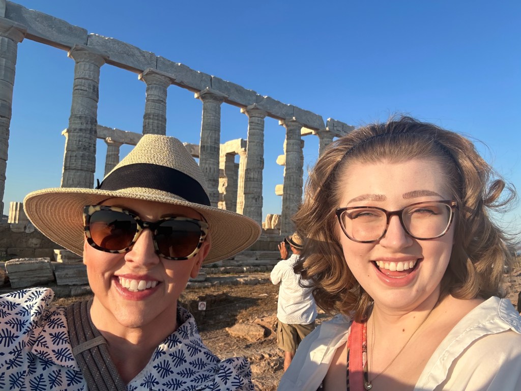 ACT IV – Our ride was canceled. The sun was setting. We were far from home. I tried rebooking through both FreeNow and Uber. No rides available. The last bus to Athens left an hour earlier. We were stranded. An American mother and daughter, sitting on the side of the road at dusk with the nearest town a 30 min walk away. All the backup plans were racing through my head. I began praying. I knew there were some nearby resorts, so thought if we could at least get to one of them, we would be safe and possibly have help to find a ride, even if that meant spending a night in Sounion. As I was on the phone with a very helpful lady, two men and a woman were walking by and talking…..wait – are those American accents? Turns out, they had rented a car and were headed back to Athens! And they knew where Paducah, KY was! This was meant to be. They offered us a ride back to Athens – they were complete strangers and we were thankful for their generosity and hospitality. The five of us piled into a small European hatchback and hit the road back to Athens. Jim and his father were from Pennsylvania, but had friends in Paducah. Sabrina, Jim’s girlfriend, was from Germany and shared the backseat with Amelia and me. We all talked non-stop on the drive back. Because it was dark and the traffic situation chaotic we were dropped off, I never snapped a picture. But I will be forever grateful to Jim and Sabrina (and Jim’s dad).