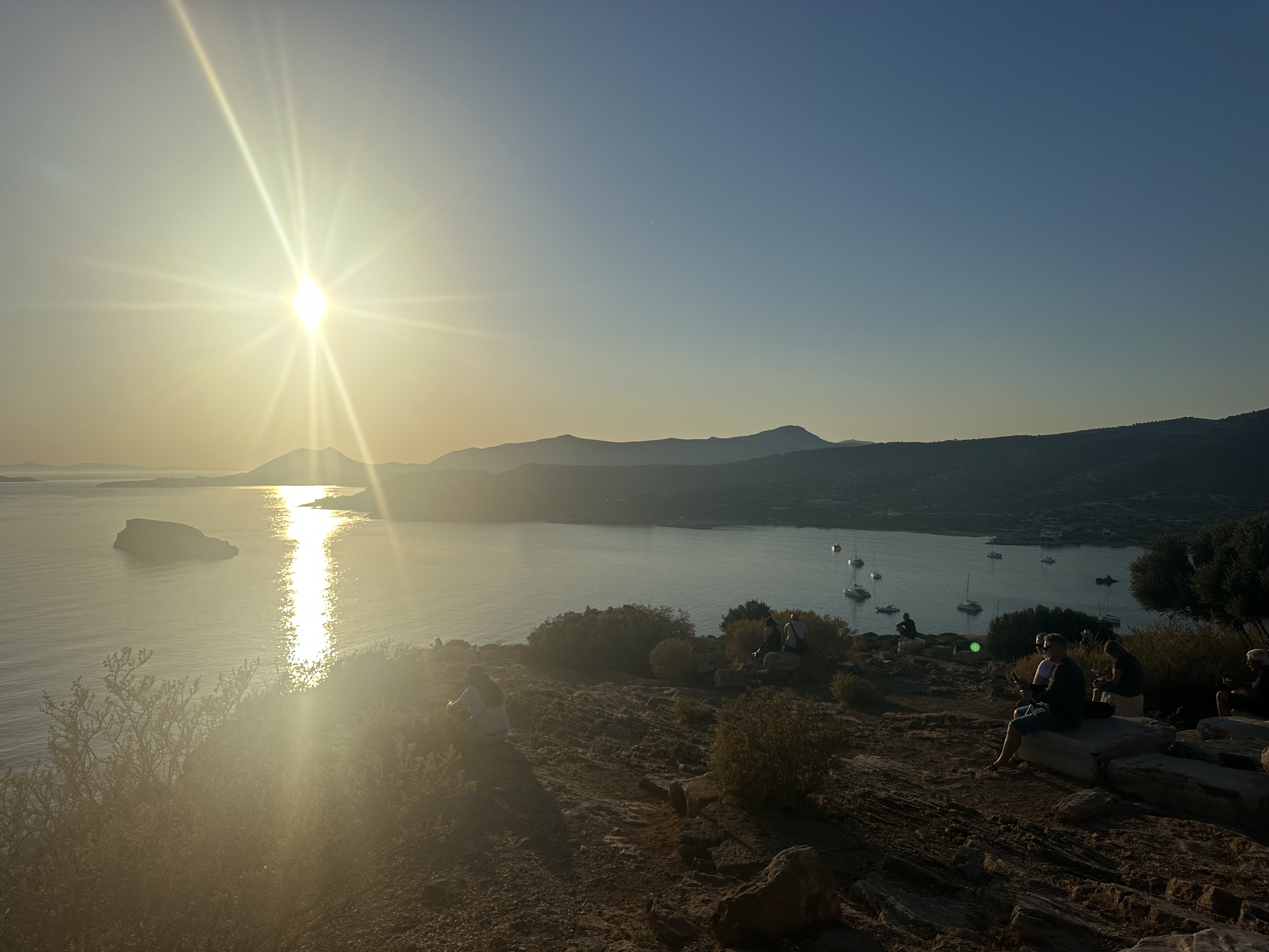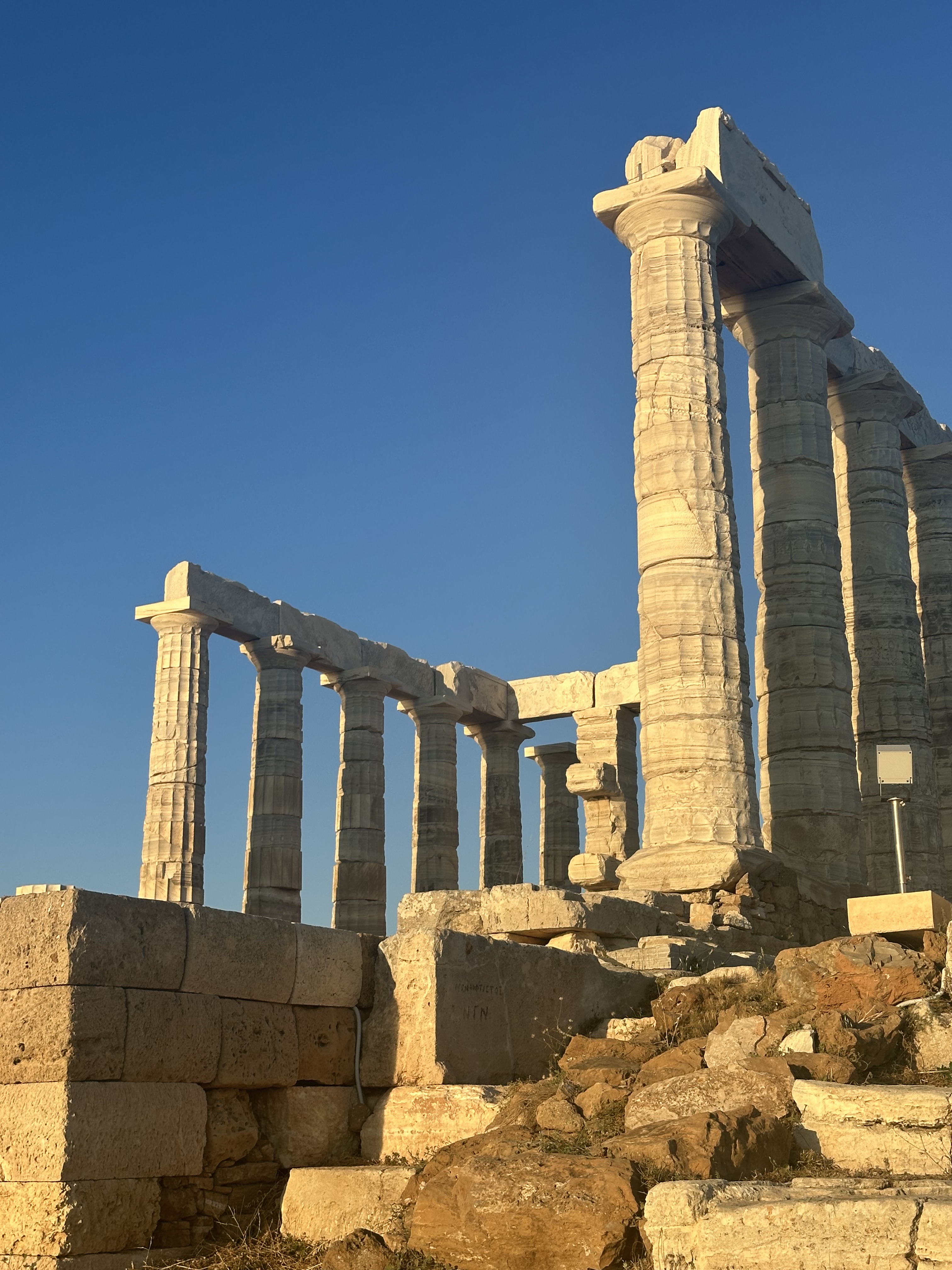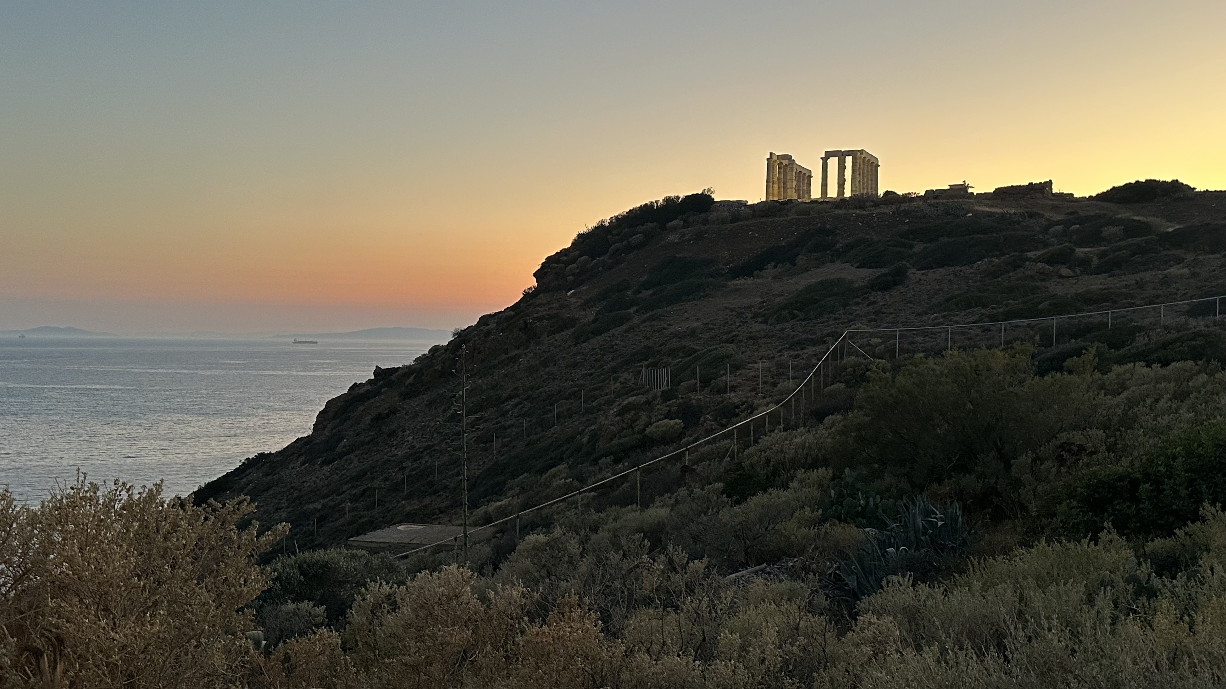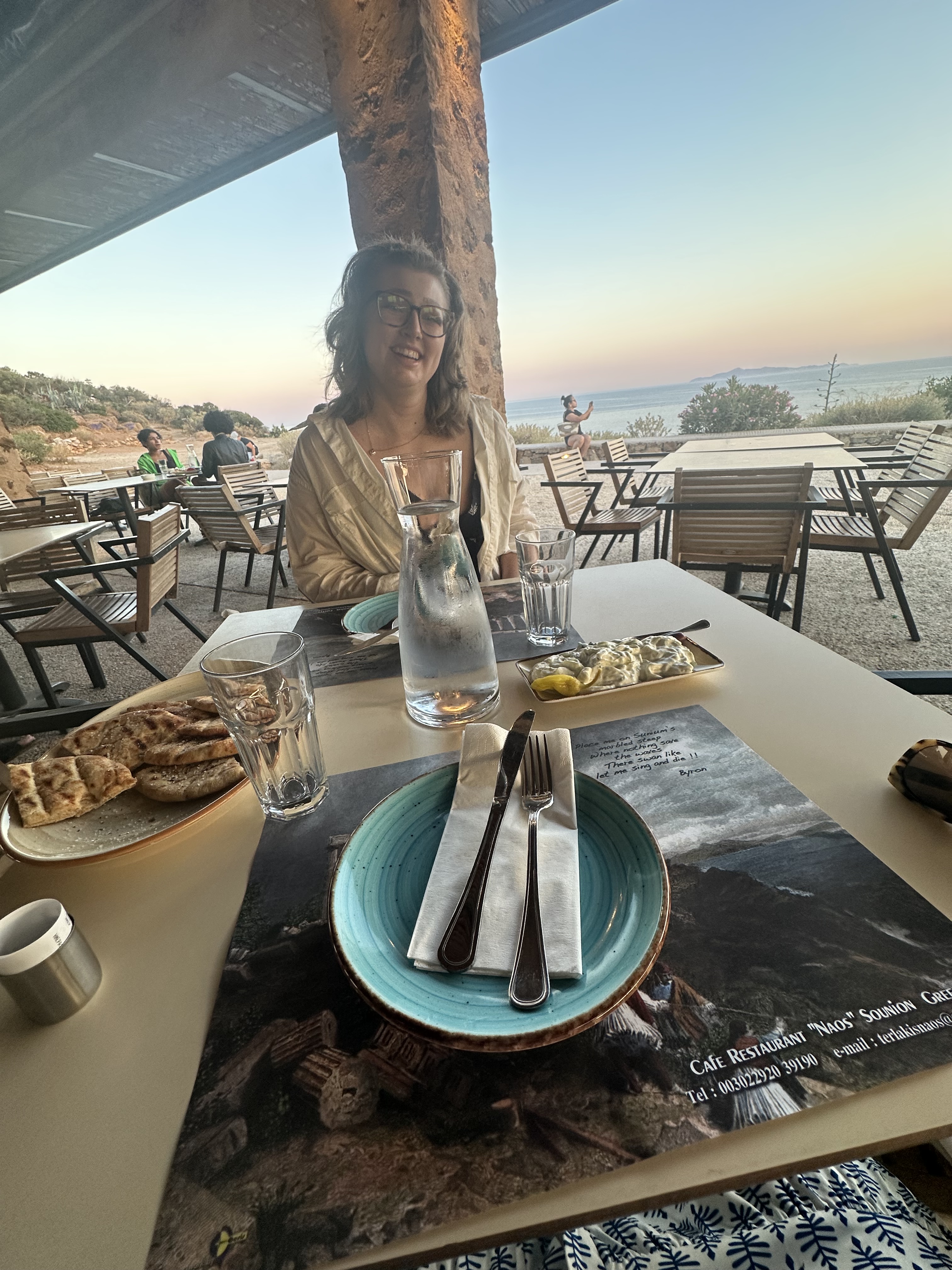 ACT III – Journey to Sounion and the Temple of Poseidon. Sounion is approximately 65 km from our base in Plaka. I’d booked a car to drive us there because the bus would take over 3 hours. After our long train journey to Mount Olympus, that was a no go. Speaking of cars, I’ve found the app FreeNow very handy. It directly connects you with local taxi drivers and is much cheaper than Uber (which is also an option). Our ride took about 1.25 hrs but it was time well spent watching the landscape which mesmerizes me. Our goal was to reach the Temple at sunset (because that’s what was recommended). WOW. Surrounded by the Sounion harbor and Aegean Sea, this site was breathtaking. So, so peaceful. We ate at the adjacent restaurant and had a ride booked for the journey back.