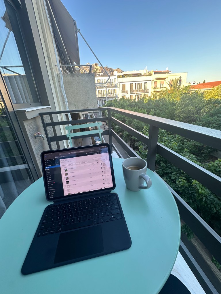 ACT I – One last walk through Monastiraki Square, National Gardens, Plaka. Momo Suites Acropolis by Aura has been good to us. The location was ideal, the apartment was comfortable and we woke each day well-rested. I’ve enjoyed updating my travel blog each morning on the small balcony, drinking espresso and having a view of the Acropolis and tree covered tavernas below. I will miss these mornings of reflection here in Plaka.