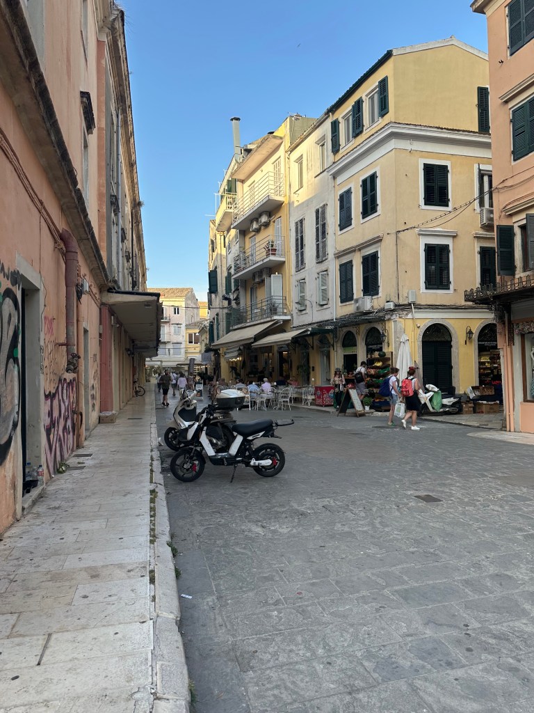 Our maiden voyage was driving from the resort in Gouvia to Old Corfu Town, about 20 min away. Did we miss a turn? Maybe. Did I end up driving on a few backroads reminiscent of Pisgah Pike? Yep. Did we survive? 100%!