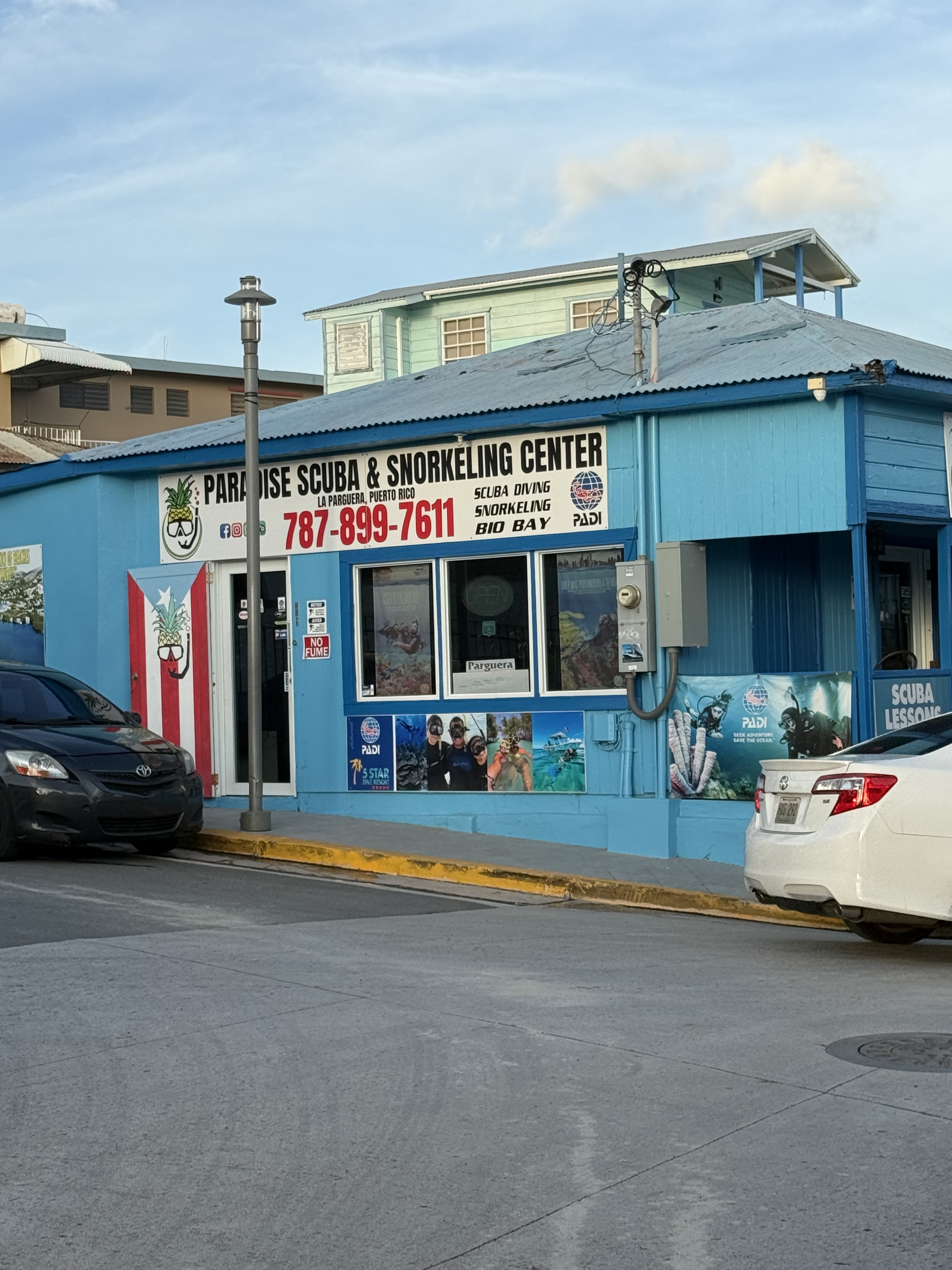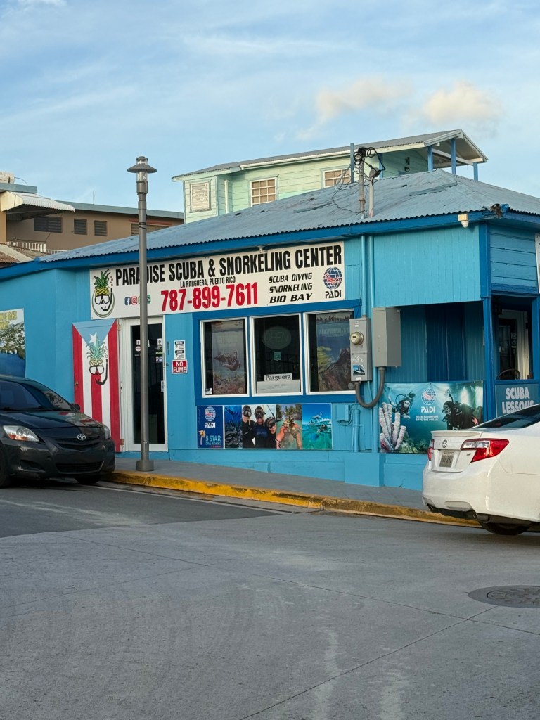 In the late afternoon, I drove to La Parguera where I had booked the Bio Bay Parguera & Sunset Snorkel with Paradise Scuba & Snorkeling Center, is a family-run, PADI-certified dive shop. One of the most famous features of La Parguera is the bioluminescent bay, where microscopic organisms called dinoflagellates emit glowing light when disturbed — and it’s one of the few in Puerto Rico where swimming is allowed in the glowing waters. Trust me – if you get the chance to go, GO!